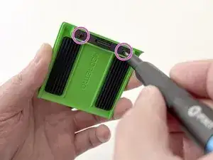 Удалите винты (x2), фиксирующие крышку защёлки, при помощи отвертки Tri-wing Y1.