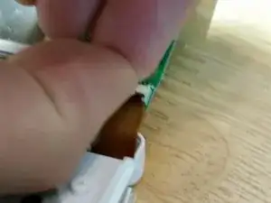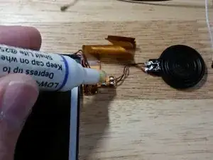 Снимите шлейф пальцем. Не используйте плоскую биту, так как она может повредить разъём. Извините за размытое фото, но этот шаг будет очевиден, если вы следовали инструкции с реальным устройством. Смотрите предыдущий шаг для более чёткого изображения.