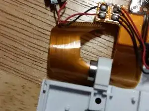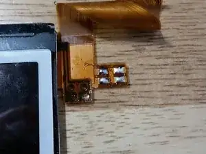 Если гибкий кабель повреждён, то вам придётся потратить около 8 долларов по состоянию на момент написания. Проявляйте крайнюю осторожность с этой хрупкой деталью, аккуратно скатывая её в плотный цилиндр. При повреждении гибкого кабеля восстановить ЖК-дисплей невозможно — весь модуль подлежит утилизации. Снимите и отложите металлическую деталь.