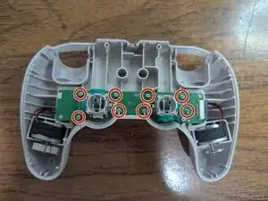 Следуйте этой инструкции, чтобы удалить плату, содержащую обе модули джойстика. Удаление платы позволяет вам припаять новые модули или очистить их.