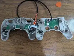 Медленно поднимите плату из контроллера. Убедитесь, что вы поднимаете и оба мотора вибрации.