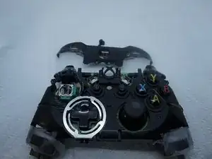 Снимите крышку кнопки питания с контроллера. Если сборка LB/RB съёмная, снимите её следующей. Можно использовать пластиковую лопатку.