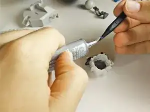 Ремонт завершён. Подвигайте джойстик, чтобы проверить жёсткость. Если джойстик по‑прежнему сильно люфтит, возможно, потребуется добавить больше эпоксидного клея. Если джойстик слишком тугой, возможно, нужно удалить излишки эпоксидного клея.