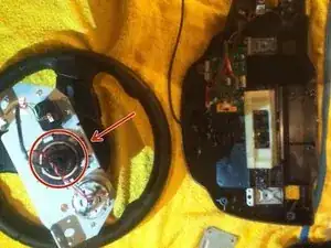 Снимите винты с крестообразным шлицем, которые крепят основание рулевого колеса. Перед демонтажем колеса внимательно запомните, как шестерни зацепляются друг за друга. Желательно отметить места их контакта. При сборке установите шестерни в те же положения, в которых они были на заводе.