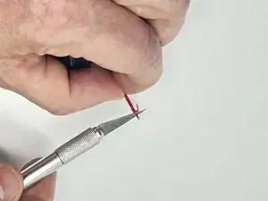 Припаяйте красный провод к положительному контакту, расплавив припой для создания соединения.