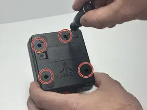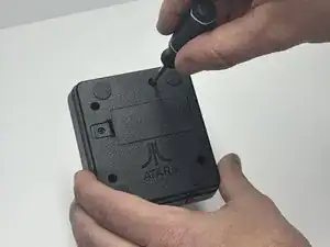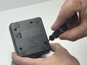 Используйте крестовую отвертку Phillips #1, чтобы вынуть четыре винта 2 мм со дна контроллера Atari.