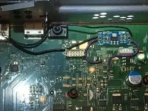 Пайка была следующей: от материнки L3B1 (северная сторона) 5v, на вход конвертера. На выходе конвертера 3.3v, на L5A1 (восточная сторона). От заземления конвертера подключите как вход, так и выход к корпусу аналогового a/v модуля.