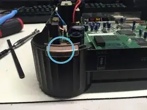Открутите 2 винта Phillips №2, крепящих блок питания к корпусу.