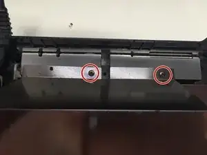 Открутите 2 винта Phillips №1 с задней части защитного кожуха дисковода.
