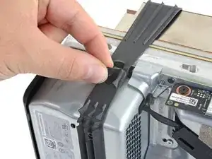Пальцами или пинцетом приподнимите и снимите угловую накладку блока питания.