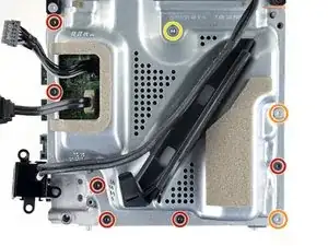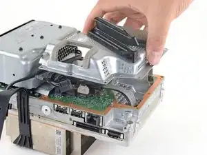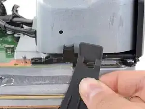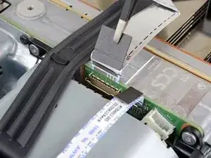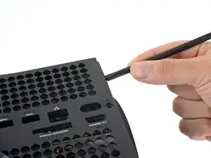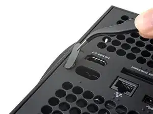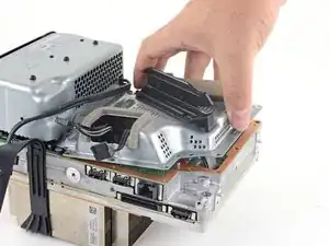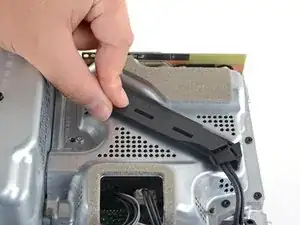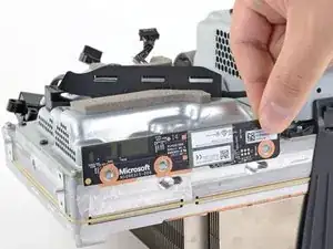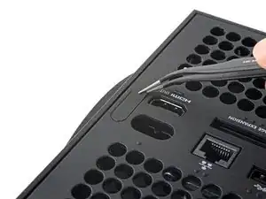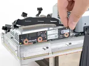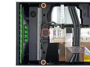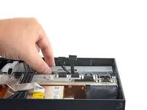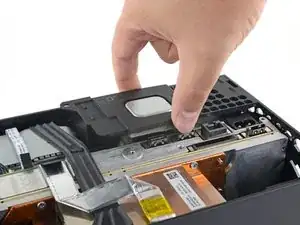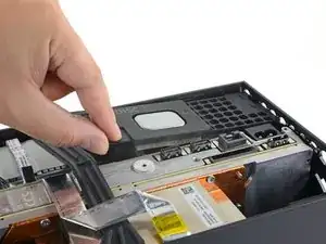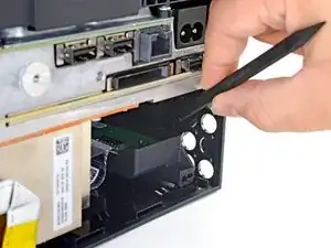 Если кабель порта USB приклеен к металлическому каркасу, воспользуйтесь iOpener или феном, чтобы нагреть кабель. В зависимости от модели Xbox может потребоваться также поддеть кабель снизу лезвием, чтобы отделить клейкую ленту.