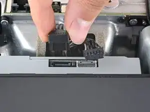 Отсоедините шлейф данных от оптического привода, потянув его вверх пальцами.