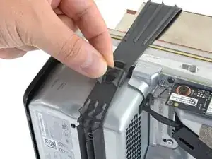 Отстегните металлическую скобу каркаса от правой стороны блока питания.