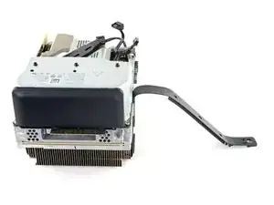 Если вы заменяете вентилятор, новый вентилятор может не включать в себя пластиковую монтажную скобу, прикреплённую к вентилятору четырьмя винтами T10 Torx. В этом руководстве она не показана.