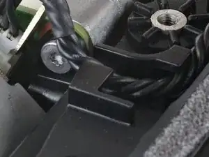 Используйте биту Torx T8, чтобы вывернуть три винта, крепящие разъём кабеля питания к каркасу: