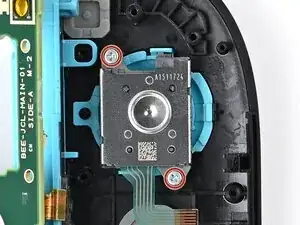 Используйте отвертку JIS 00 для снятия двух серебряных винтов длиной 3.9 мм, удерживающих джойстик.