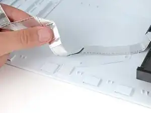Используйте пару наклонных пинцетов, чтобы снять наклейку, скрывающую первый винт на задней панели, рядом с основанием.