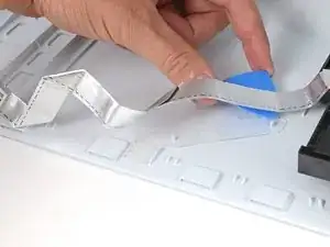 Используйте лопатку, чтобы поднять металлическую фиксирующую защёлку на ленточном кабеле USB‑порта.