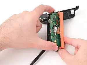 Поднимите плату за ее внешние края под углом примерно 45 градусов, чтобы она больше не блокировалась сборкой джойстика.