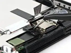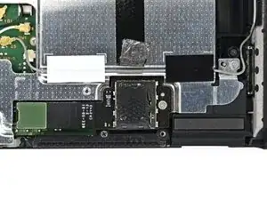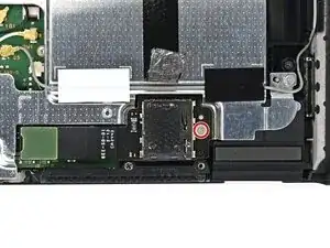 Используйте отвертку JIS 00, чтобы вывернуть серебристый винт длиной 4.4 мм, крепящий считыватель карты MicroSD.