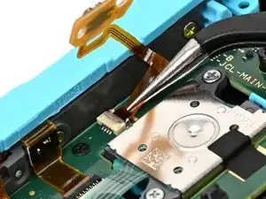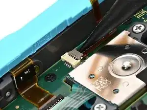 Наконечником лопатки отогните защёлку на ZIF‑разъёме платы кнопки триггера на плате контроллера.