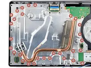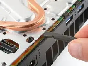 Используйте отвертку T8 с защитным профилем, чтобы снять девять винтов, фиксирующих крышку основной платы: