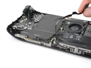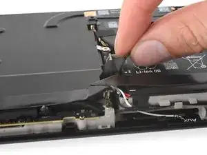 Когда кабель аккумулятора освободится, он может приподнять экран платы. Не волнуйтесь, это ничего не повредит.