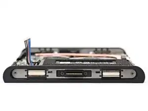 Удалите два черных винта длиной 3.2 мм, фиксирующие разъем Joy-Con 2 слева.