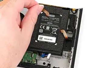 Уберите кабель Joy-Con 2 слева из области батареи.