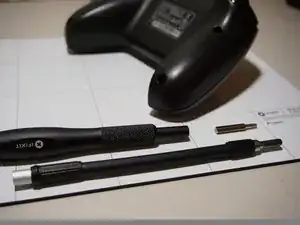Начните с удаления четырех винтов безопасности TR9 Torx на задней стороне контроллера.