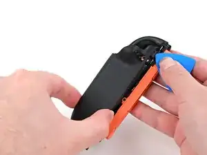Наложите заднюю крышку на корпус контроллера так, чтобы вырез для фиксатора находился немного ниже фиксатора.