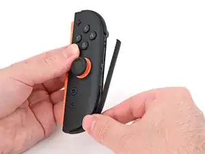 Выровняйте защелки на пластиковой полоске с их вырезами на правом краю корпуса контроллера.