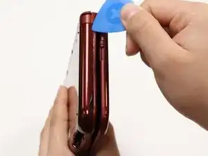 Заденьте opening pick в вырез и подденьте, чтобы отделить заднюю крышку от корпуса.