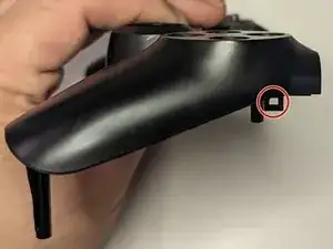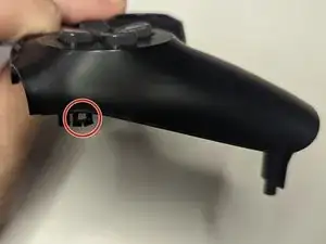 Вставьте свой инструмент в место, указанное на правой (кнопочной) стороне контроллера, и повторите предыдущий шаг для отстегивания этого зажима
