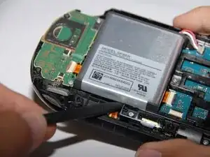 Теперь с помощью пинцета аккуратно удалите шлейф, соединяющий аккумулятор с аппаратным обеспечением.