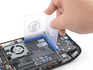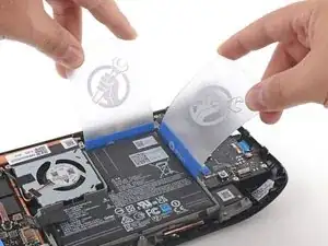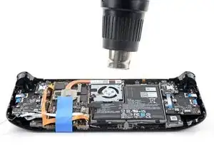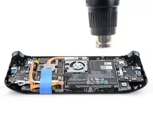 Примечание: Аккумулятор Steam Deck прочно приклеен и требует многократного нагрева и поддевания для удаления. Тепла, которое даёт iOpener, может быть недостаточно для ослабления клея, поэтому для этой процедуры рекомендуется использовать тепловую пушку (или, как альтернатива, фен).