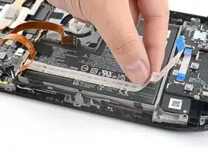 Поднимите батарею вверх, от Steam Deck, чтобы полностью отделить её от всего клея.