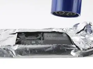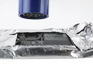 Используйте фен или термофен на «низкой» мощности, чтобы медленно нагреть батарею и размягчить клей под ней.