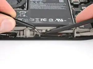 Антенные кабели перекрывают прорези в середине рамки. В этом шаге вы сместите их вниз, чтобы освободить место для карт, которые будут просунуты под батарею.