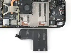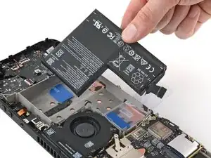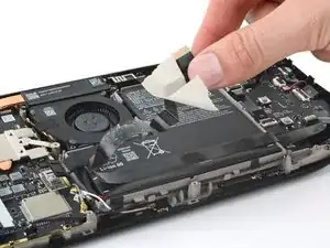 Когда кабель аккумулятора освободится, он может приподнять экран платы. Не беспокойтесь — это не повредит устройство.