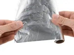 Обмотайте рамку слоем алюминиевой фольги так, чтобы была открыта только батарея.