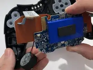 Поднимите материнскую плату из задней части корпуса, пока вибромоторы и платы кнопок остаются прикреплёнными.