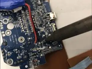 Удалите аккумулятор, расплавив припой, чтобы отсоединить провода аккумулятора.