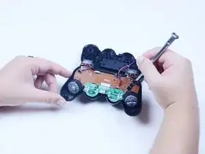 Выкрутите два винта 6,1 мм, фиксирующие внутреннюю плату с аналоговым джойстиком и переднюю часть контроллера.