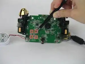 Используя пинцет, отсоедините (4) четыре металлических зубца аналогового джойстика.