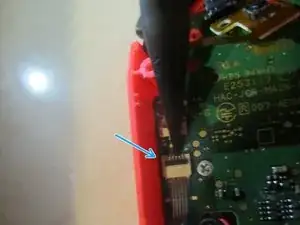 Перед снятием джойстика отсоедините фиксированный ленточный кабель, открыв защёлку коннектора кончиком лопатки.
