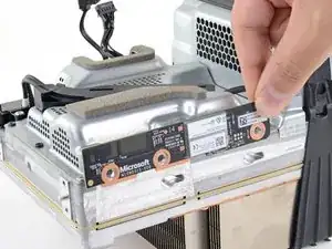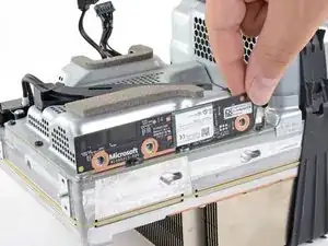 Если кабель порта USB кажется приклеенным к металлическому шасси, используйте iOpener или фен, чтобы нагреть кабель. В зависимости от вашей модели Xbox, возможно, вам также потребуется вставить лопатку под кабель, чтобы отделить клей.