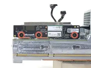Используйте отвертку Torx T8, чтобы удалить три винта диаметром 9.6 мм, которые крепят антенную плату к центральному шасси.