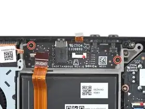Открутите отвёрткой Phillips два винта длиной 3,7 мм, крепящих аудиоплату.
