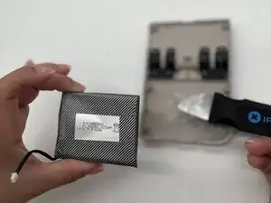 Используйте лопаточку, чтобы осторожно поддеть по периметру батареи, пока она не освободится.